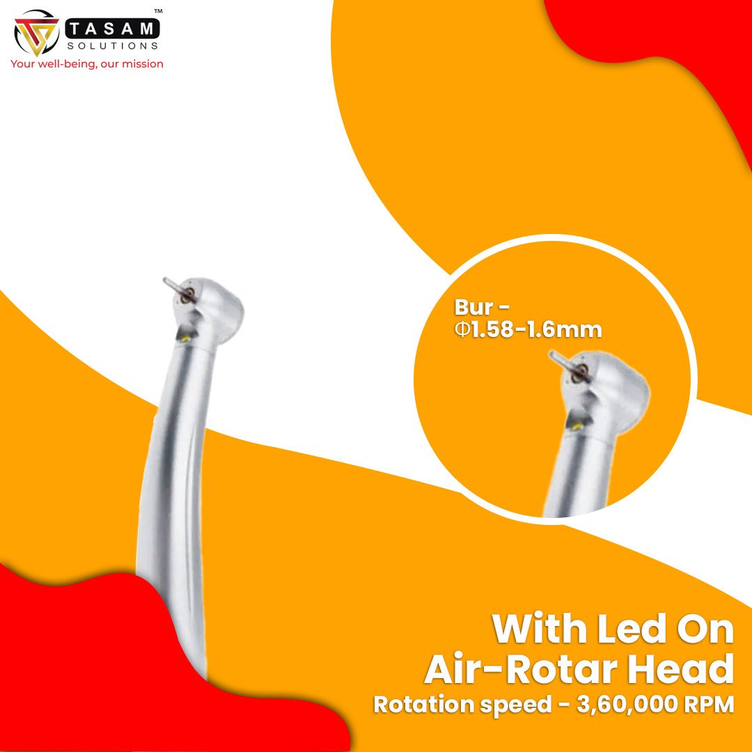 LED • Three Spray with Anti-retraction 12 months warranty (terms and condition applied)- • 6 months replaceable warranty + 6 months repairable warranty • Should not carelessly handled • Dent Proof External & Internal Technicals • Chuck type - Push button • Bur - Φ1.58-1.6mm • Rotation speed - ≥ 360.000 RPM • Spray - Three water spray • Air pressure - 0.22-0.25MPa • Noise - ≤ 60db |